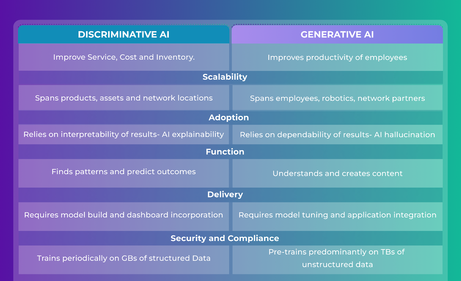 The lessons learned from discriminative AI serve as guideposts for the supply chain. The principles of value, scalability, and adoption all continue as key success criteria for generative AI, where deep learning models are used to understand and create new content.