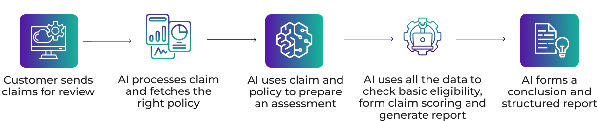 Platform orchestrates claim assessments, automating repetitive tasks while integrating human validation where needed.
